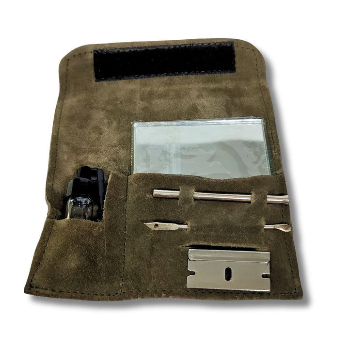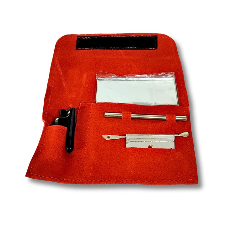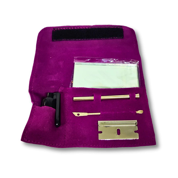 Enhance your snuff experience with the All-in-One Suede Leather Pouch Pipe Case Pocket Sniffer Kit. This versatile and sophisticated set includes all the necessary tools for preparing and enjoying snuff, discreetly packed in a luxurious suede leather wallet. Elevate your snuff game with convenience and elegance.
