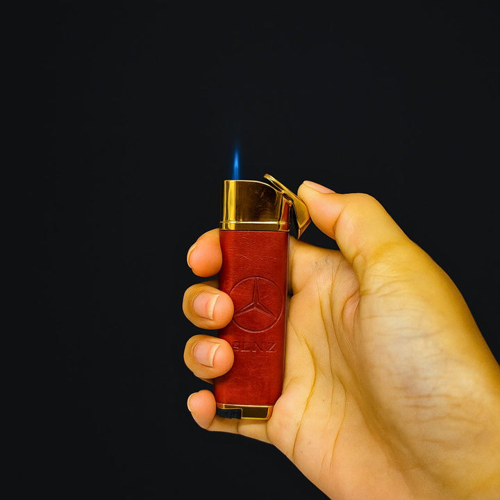 Wrapped in rich brown leather with golden metal detailing, this lighter draws inspiration from luxury car interiors. The smooth finish feels premium in hand, while the solid metal body adds that sturdy, confident touch.