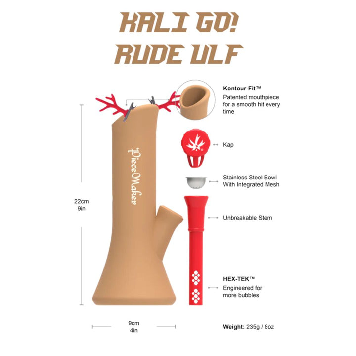 The Kali Go! Bong from PieceMaker is a silicone water pipe that is the perfect travel companion. The Kali Go! is a slightly bigger version of the Kali, and has a tethered spill-proof bowl cap that won't go missing. This unbreakable bong is made of food grade BPA-free silicone and has a silicone downstem with HEX-TEK technology for maximum percolation, and a stainless steel bowl piece with integrated mesh. More bubbles = More fun