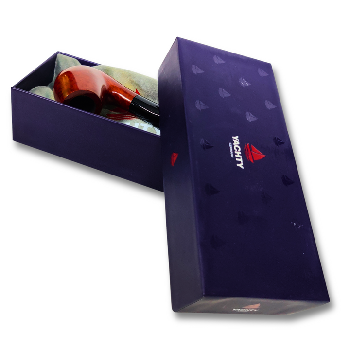 The Yachty Dark Brown Tapered Bowl Bent Briar Pipe, crafted in Germany from premium briar wood, merges traditional artistry with contemporary design. Its dark brown finish and elegantly bent stem offer a timeless silhouette, while the tapered bowl provides a comfortable hold and smooth smoking experience. Featuring a 9mm filter system, it ensures a cooler, cleaner draw that enhances tobacco flavor. Each pipe is meticulously hand-finished by artisans spanning three generations, making it a refined piece for both smokers and collectors.